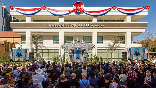HOME ▶ PRESS PHOTOS Church of Scientology of Austin Grand Opening Photos AUSTIN, TEXAS • FEBRUARY 24, 2024 VIEW ALL DOWNLOAD PRESS PHOTOS 37 PHOTOS I agree to the Terms of Use for images. © 2026 Church of Scientology International. All Rights Reserved. DOWNLOAD « Previous Church of Scientology Del Valle Grand Opening Photos Next » Church of Scientology Answers Ongoing European Expansion with Religious Retreat in Central Copenhagen Press Release Video News Release Photo Gallery CONTACT MEDIA RELATIONS Church of Scientology International6331 Hollywood Blvd. Los Angeles, CA 90028 USA Phone: (323) 960-3500 Email: mediarelations@churchofscientology.net Spokespersons Related Link DAVID MISCAVIGE Chairman of the Board Religious Technology Center VISIT SITE DOWNLOAD PDF Additional Resources New Scientology Star Rises in Texas’s All-Star Capital of Austin David Miscavige, Scientology Ecclesiastical Leader