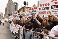 Citizens Commission on Human Rights (CCHR) picketed the annual meeting of the American Psychiatric Association (APA) in New York City to demand psychiatrists cease using electroshock —especially on children.