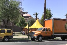 Volunteer Ministers traveling Cavalcade holds a grand opening and ribbon-cutting ceremony on the Arizona State Capitol lawn in downtown Phoenix. The Cavalcade brings indiscriminate help to people in communities throughout the Western United States.