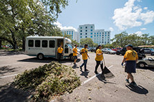 Volunteer Ministers help hospital staff clean up the Morton Plant Hospital parking lot after it was littered with leaves, fallen branches and moss from Hurricane Irma.