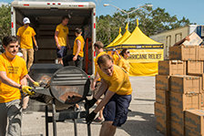 Scientology Volunteer Ministers carry out a massive barbeque for the Greenwood Community in the wake of Hurricane Irma. More than 1,700 hot meals are served and more than 3,000 bags of ice are distributed to households throughout the neighborhood.