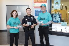 Extending the campaign launched in San Francisco before the NFL championship game, Truth About Drugs volunteers donate booklets to local police to bolster drug education and prevention.
