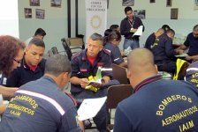 Volunteers from the Church of Scientology train firefighters at Simón Bolívar International Airport in Caracas on The Way to Happiness