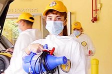 Volunteer Ministers from the Church of Scientology in Vienna, Austria, disinfect a local temple to protect the health and safety of its members.
