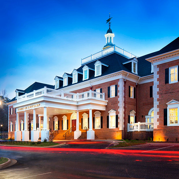 The new home of the Church is located in the Atlanta metropolitan area and the City of Sandy Springs, atop a rise overlooking the bustling Roswell Road. The 45,000-square-foot Williamsburg-style mansion speaks “Southern charm” and welcomes all from Atlanta and beyond.