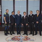 Mr. David Miscavige, Chairman of the Board Religious Technology Center and ecclesiastical leader of the Scientology religion, with (left to right): Mr. Fabio Bergomi, of the Executive Council for Volunteerism for the Metropolitan City of Milan; Mr. Gelek Yakar, President of the Mandala Center for the Cultural Preservation of Tibet; Mr. Gianfranco Tucci, Milan City Councilor; Mr. Carlo Proserpio, President of the Council of Trade Associations—North Milan; and Mr. Marcello Arena, Sports Activities Director of the Milan Municipal Police Force.