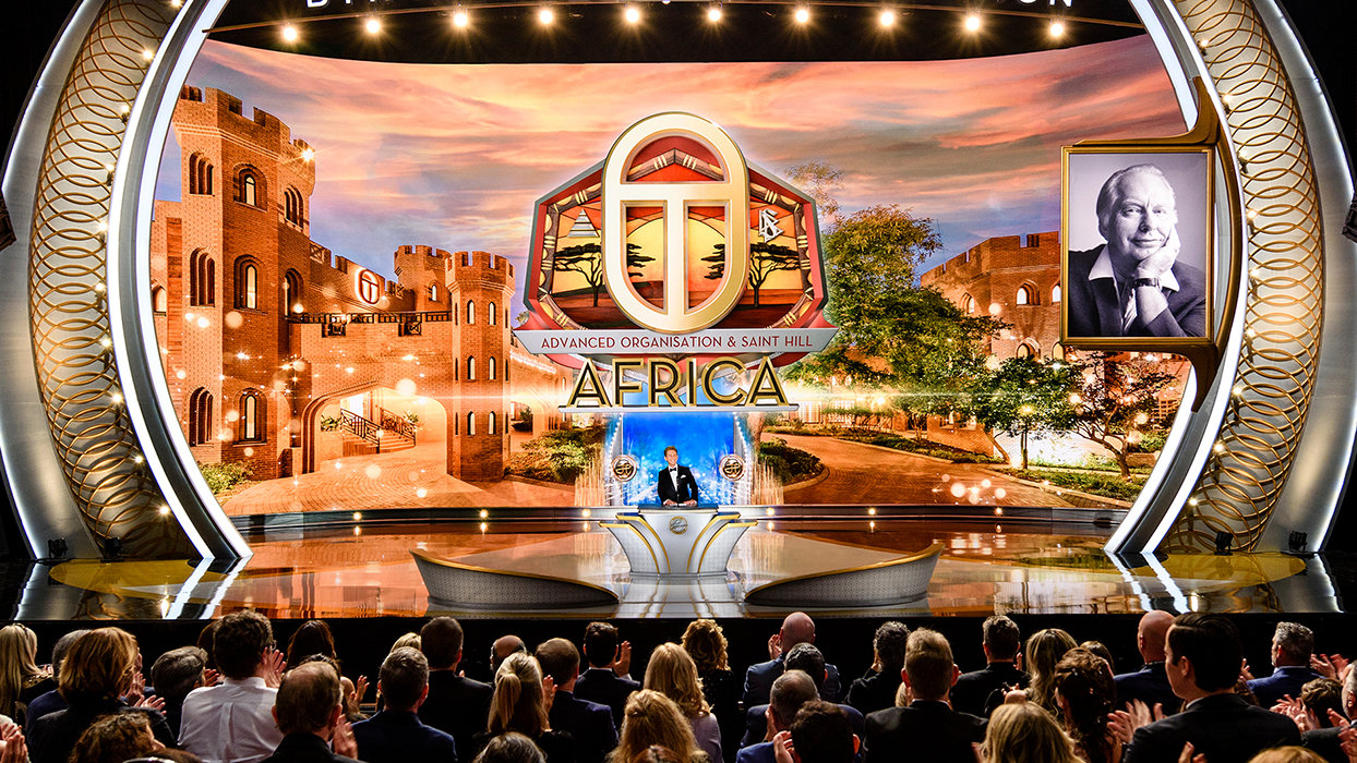 And just like that, Mr. Miscavige next presented the crowning achievement of this year’s expansion, the opening of the first new Advanced Organization in over 35 years. The historic dedication of a majestic Castle overlooking 22 acres of highveld made the advanced spiritual levels of Scientology available for the first time on African soil and thus was the realization of a dream first expressed by Mr. Hubbard over 50 years ago. The presentation chronicled a series of epic celebrations, from the magnificent grand opening, which national dignitaries hailed as an “awakening of our beloved Africa,” to a monumental gathering of tribal chiefs. Within days of opening, the Castle hosted a “Summit of Thrones” convocation of 14 monarchs from five African nations. The event’s guest of honor, Queen Shebah III, Empress of the Royal African Kingdoms, recognized L. Ron Hubbard for finding “the means to unite all kingdoms and peoples from this cradle of Africa.”